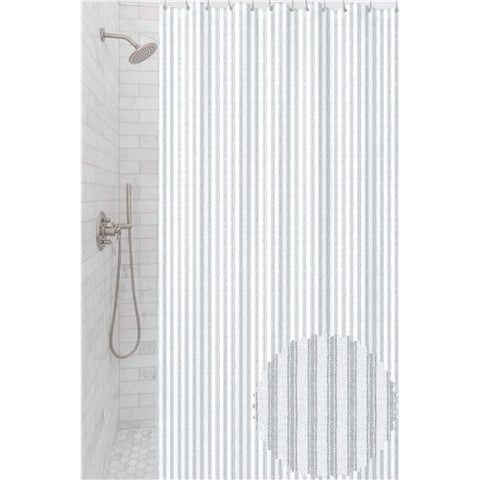 Grey and White Stripe Printed 100% Polyester Water Repellent Shower Curtain Fabric 72 inch, 75 cents a yard